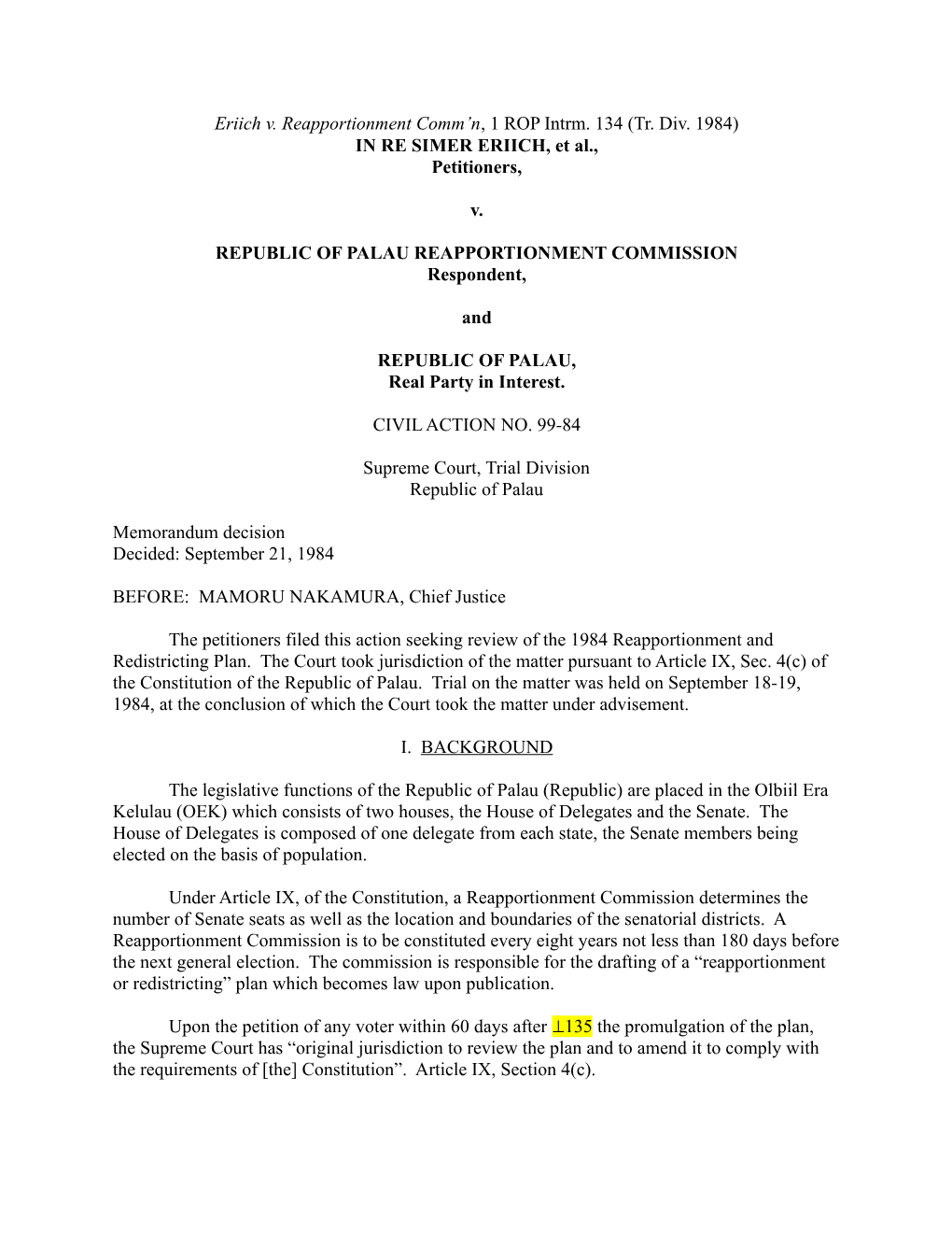 Eriich V. Reapportionment Comm'n, 1 ROP Intrm