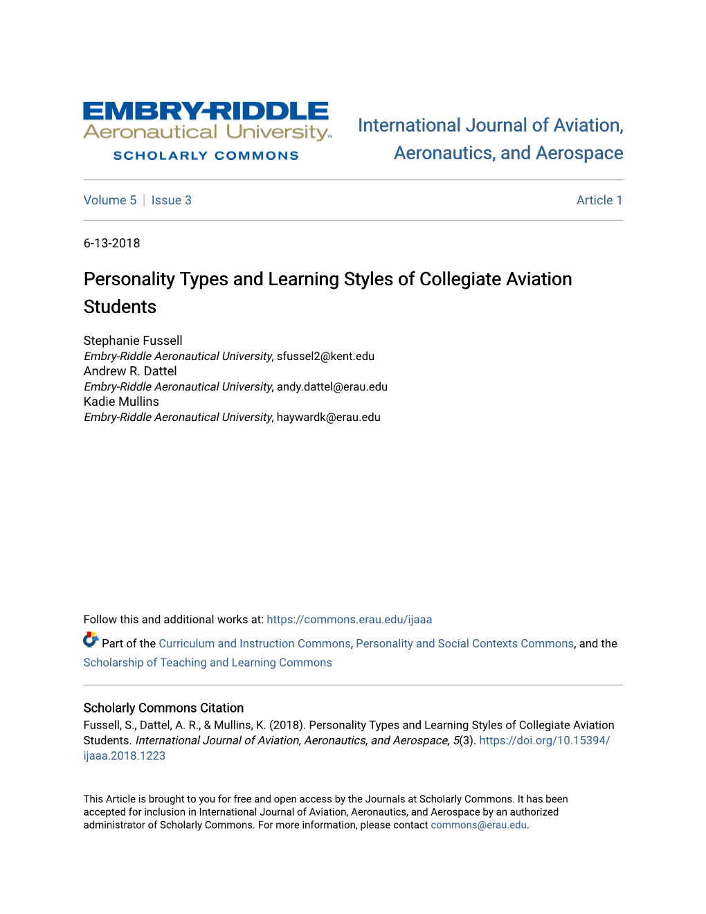 Personality Types and Learning Styles of Collegiate Aviation Students