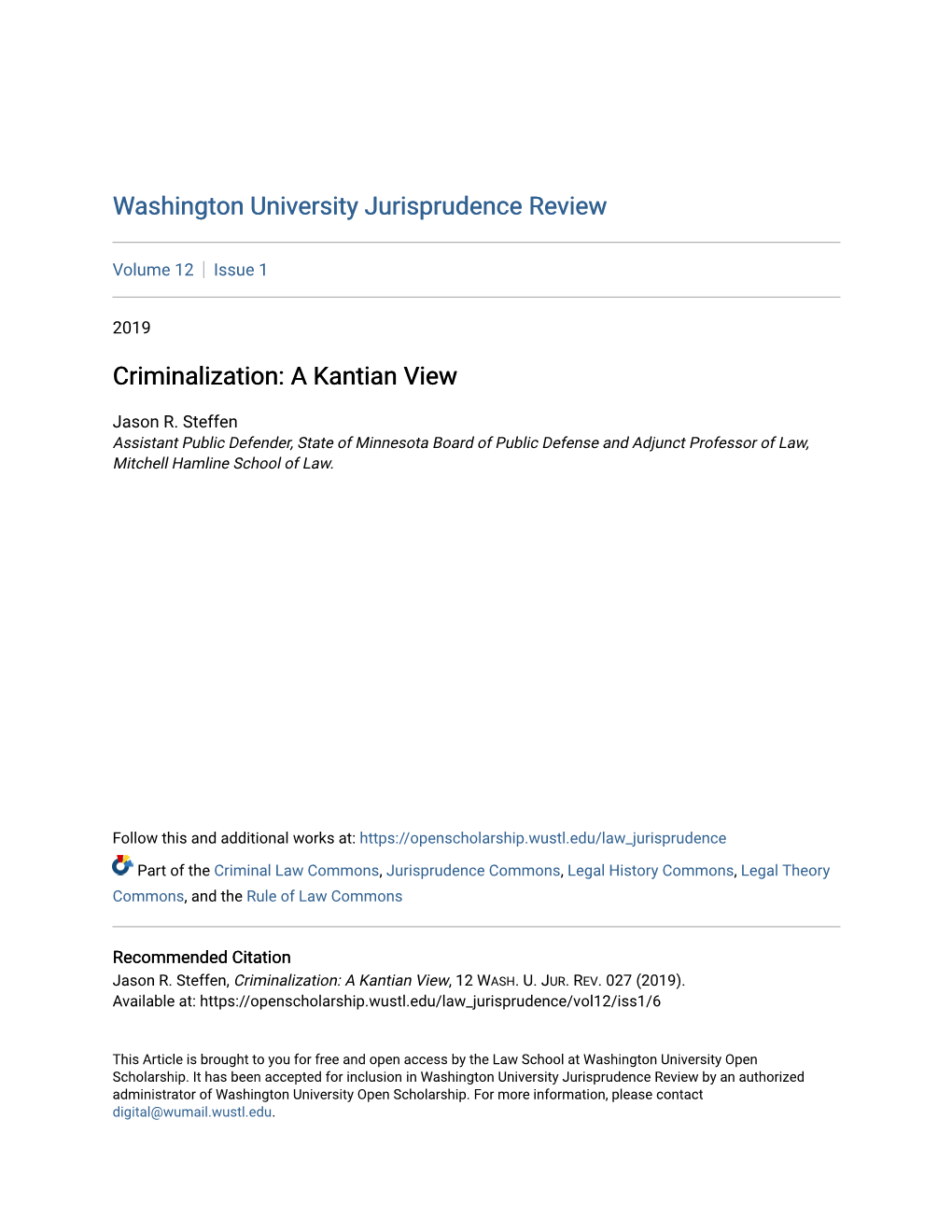 Criminalization: a Kantian View