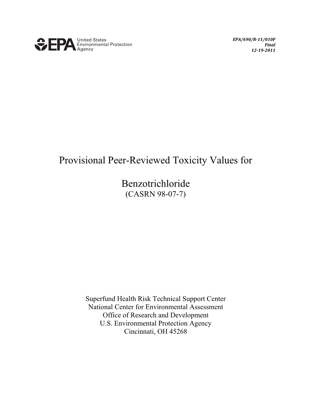 Provisional Peer-Reviewed Toxicity Values for Benzotrichloride (Casrn 98-07-7)
