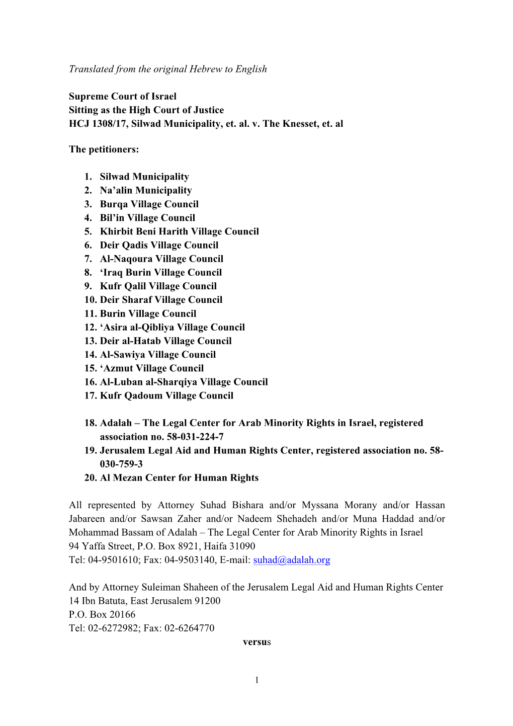 Petitioned the Israeli Supreme Court