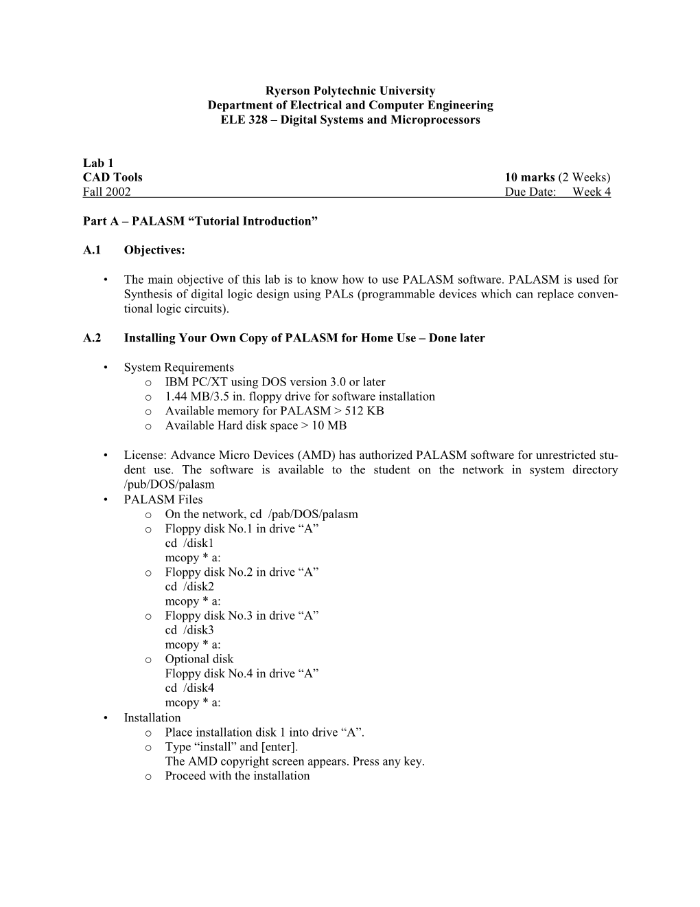 Ryerson Polytechnic University Department of Electrical and Computer Engineering ELE 328 – Digital Systems and Microprocessors