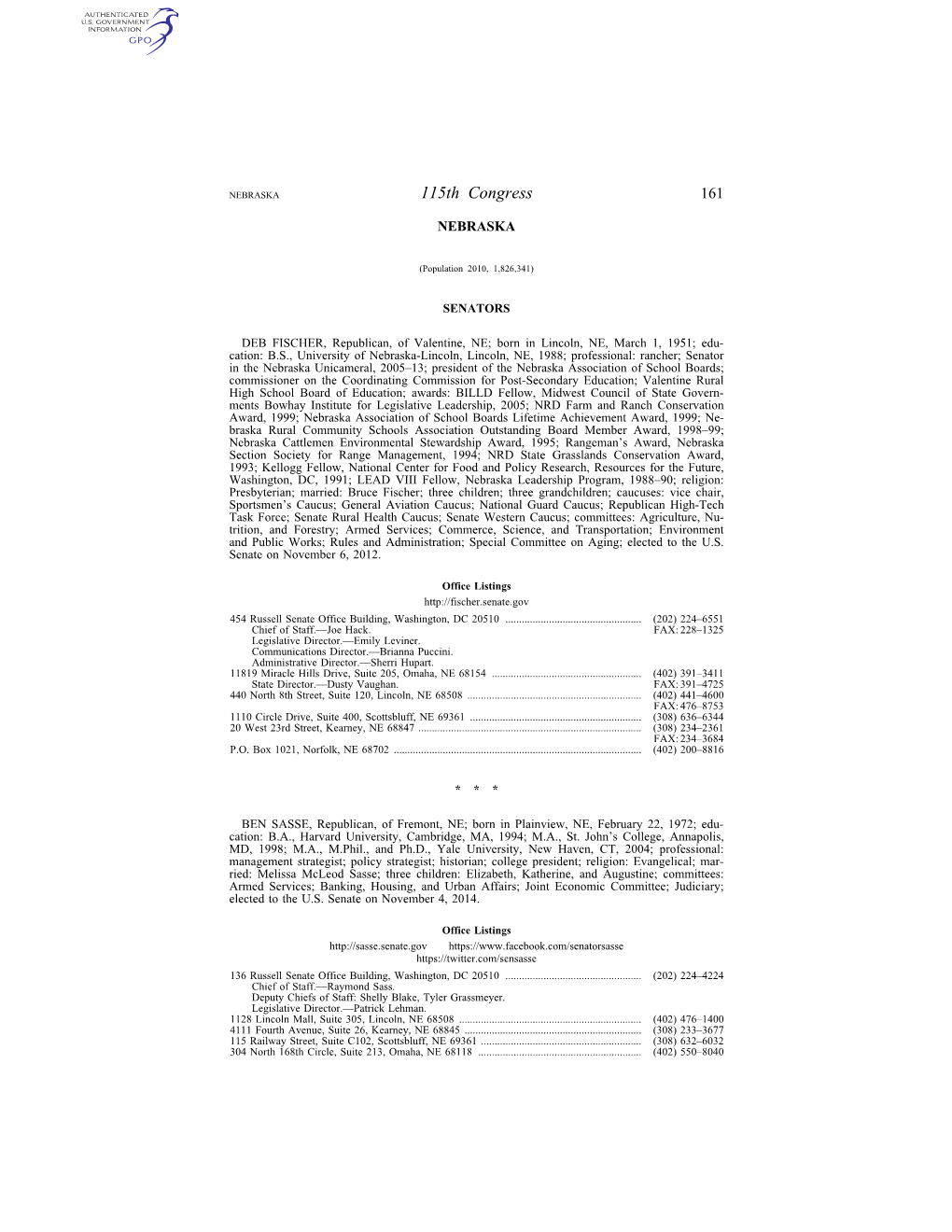 Sen. Ben Sasse (R-NE) Official Photo Navy League Advocates in State 27 Previous Contacts 6 Grassroots Actions Since July 2020 0 Address Room 107, Russell Senate Office Building, Washington, DC 20510-2709 Next Election Term Before Politics 2026 2nd term Education, Public Official Education Education Yale University (CT) Ph.D. 2004 Yale University (CT) M.Phil Education Past Military Service Yale University (CT) M.A. None Bio Sen. Ben Sasse is a 2nd term Senator in the US Congress who represents Nebraska and received 67.4% of the vote in his last election. He is a member of the Judiciary, Budget, Intelligence, and Finance committees.He works most frequently on Health (14 bills), Crime and Law Enforcement (12 bills), Civil Rights and Liberties, Minority Issues (12 bills), Law (10 bills), and Civil actions and liability (8 bills). He has sponsored 37 bills in his last six year(s) in office, voting with his party 89.7% of the time, getting 5.41% of his bills out of committee, and 0.0% of his sponsored bills enacted.Sen. Sasse most frequently cosponsors Sea Service Installations in State: Co-Sponsored Bills We Support No bills for this official. Powered by Quorum Sen. Ben Sasse (R-NE) Committees Senate Committee on Finance Senate Committee on Budget Senate Committee on the Judiciary Senate Select Committee on Intelligence Subcommittees Senate Subcommittee on Federal Courts, Oversight,... Senate Subcommittee on Human Rights and the Law Senate Subcommittee on International Trade,... Senate Subcommittee on Privacy, Technology, and the... Senate Subcommittee on Social Security, Pensions,... Senate Subcommittee on Taxation and IRS Oversight Senate Subcommittee on the Constitution Committees Senate Committee on Finance Chairs: Sen. -
