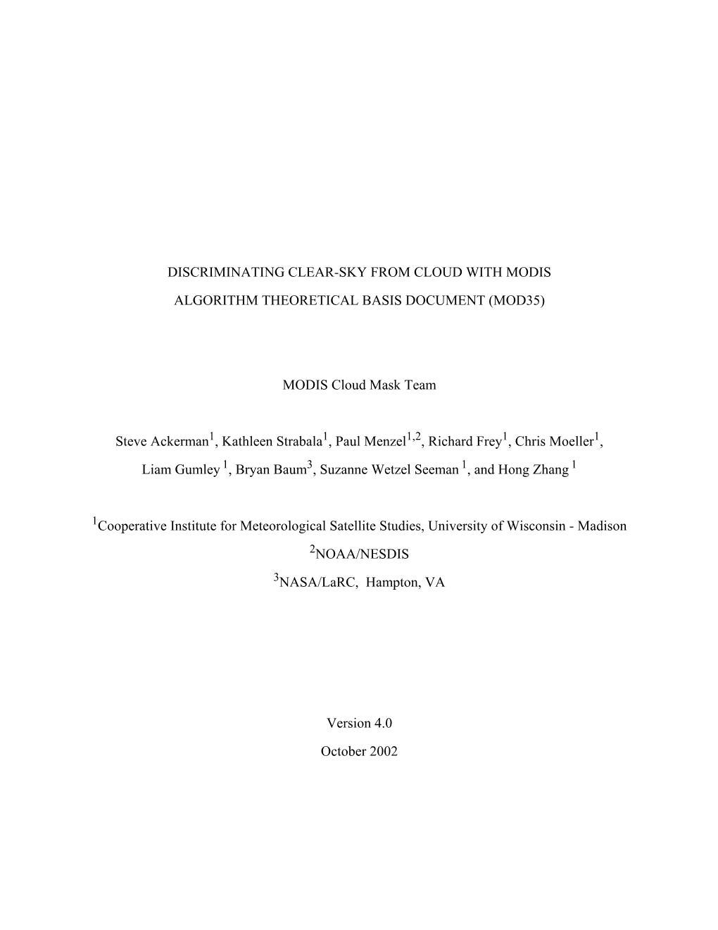 (MOD35) MODIS Cloud Mask Team Steve Ackerman