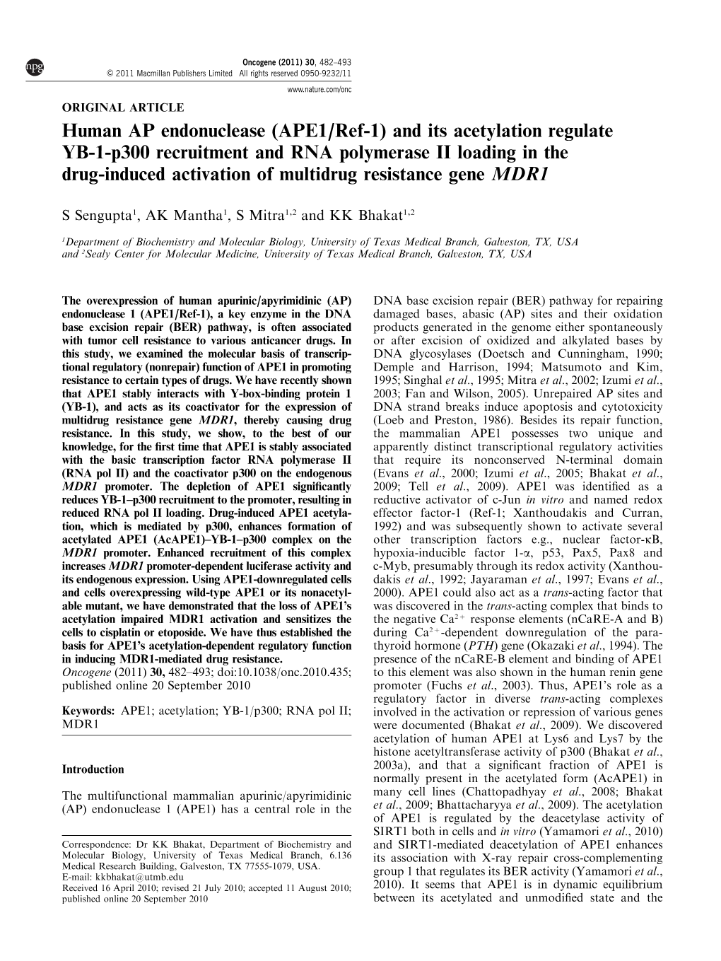 Human AP Endonuclease