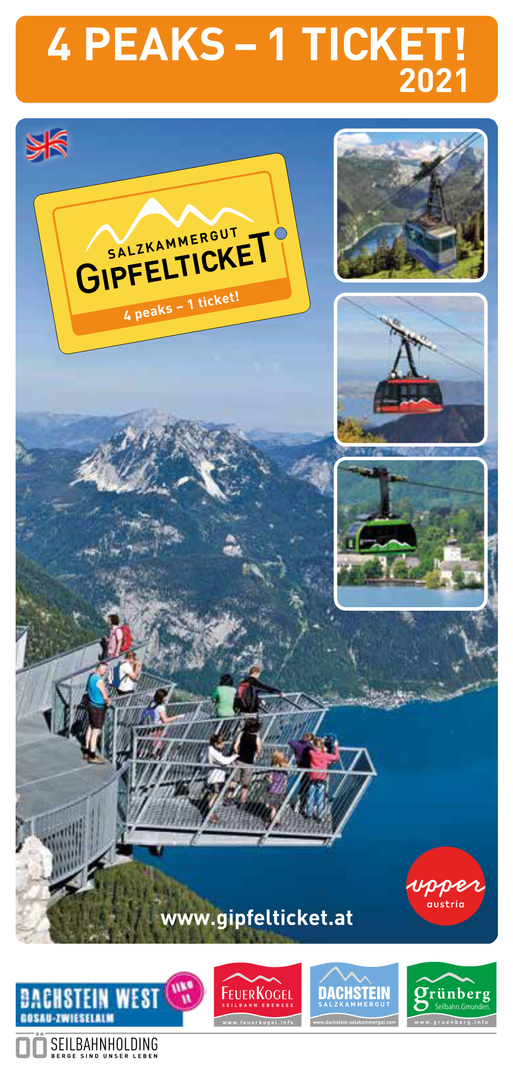 Berggasthof Edelweiß Feuerkogelhaus Events 2020 Neubacher family Reisenbichler family 4 Peaks – 1 Ticket The Feuerkogelhaus with Solstice fire its cosy and rustic public room and the large sun ter- 20.06.2020 The four most popular mountain peaks can be GUGUT race with panoramic views Atmospheric start to summer on MMER T treats its guests to regional the high plateau with musical easily reached with a SALZKAMMERSALZKA home cooking and wonder- entertainment and flame-lit hike. single ticket: GIPFELTICKEIPFELTICK ful pastries.For guests stay- Extended operation time till 11 pm. Summer 2020 ing overnight and groups, • the Grünberg in Gmunden, www.gipfelticket.atwww.gipfelticke various room categories are • the Feuerkogel in Ebensee, available with a total of 47 beds. LET’S KEEP IN TOUCH! AlpineA pasture hike with natural • the Dachstein Krippenstein in Obertraun and history tour • the Zwieselalm in Gosau. Top offer for groups of more than 20 persons: 01.07.–02.09.2020 #feuerkogel#feuerkogel Meeting point: Every Wednesday at 10 am at the mountain station of Upp & Down with the cable car + “Bratlessen” 4-Gipfelticket 3-Gipfelticket (=3 of 4) € 00 the Feuerkogel cable car. Always nearby and with the latest information! (roast meat meal) and bed & breakfast 54. Free guided tour. Journey up and down Journey up and down Contact: Phone: +43 6133 5494 FOLLOW US ON: Validity: summer season 2020 Validity: for 3 journeys up and down, [email protected], www.feuerkogel.com ChildrenC for free 15.07.– 09.09.2020 www.feuerkogel.info for one journey up and down free selectable from the 4 summits, per summit! summer season 2020! Every Wednesday, children born between 2004-2013 are free of charge on the cable car, only if accompanied by one parent (family Adult € 64.00 Adult € 52.50 Kranabethhütte Christophorushütte ID required).