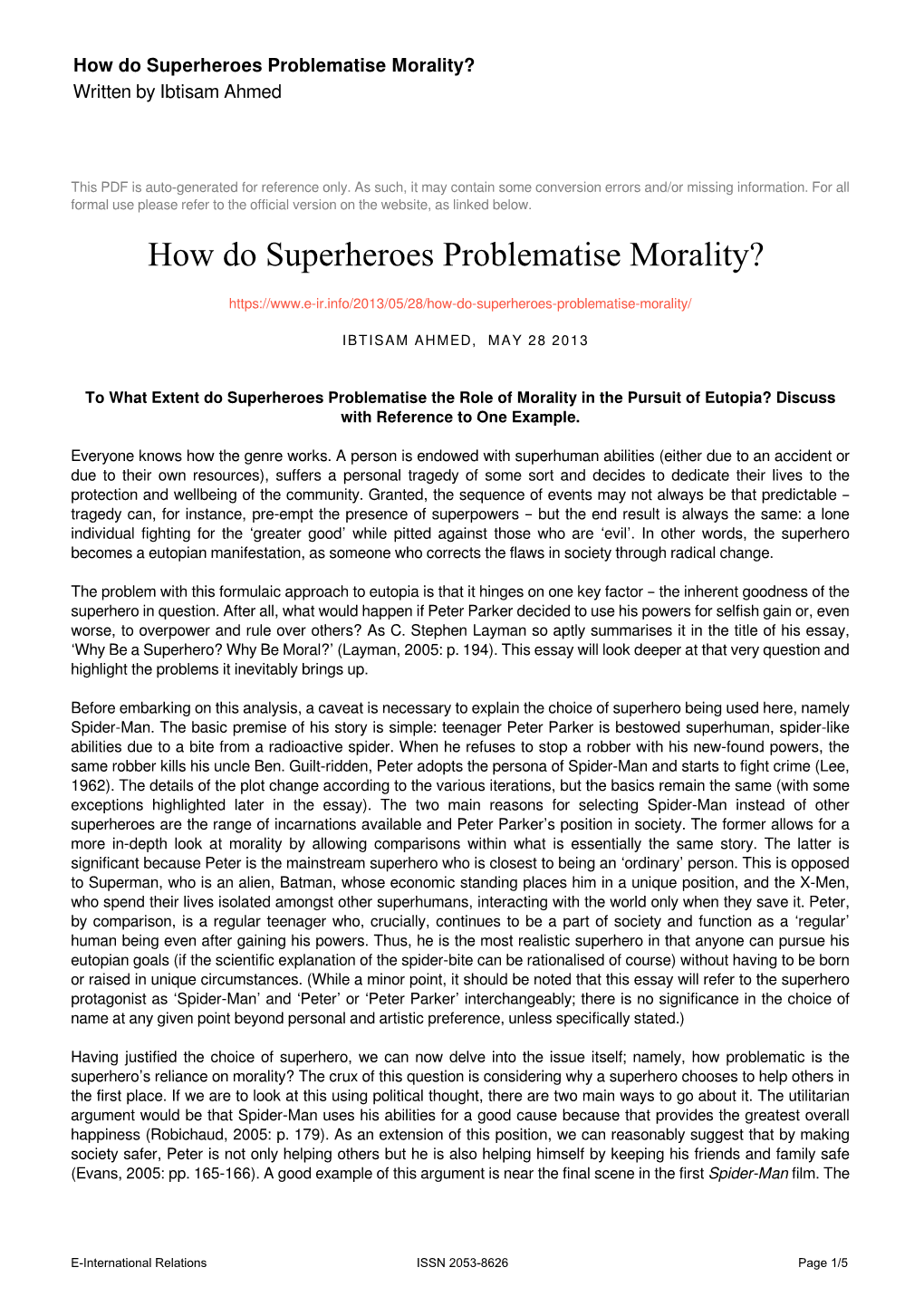 How Do Superheroes Problematise Morality? Written by Ibtisam Ahmed