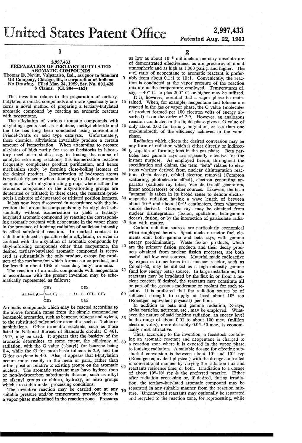 United States Patent Office Patented Aug