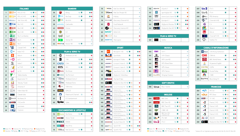 UPC Elenco Dei Canali TV Horizon/Mediabox/Basic TV