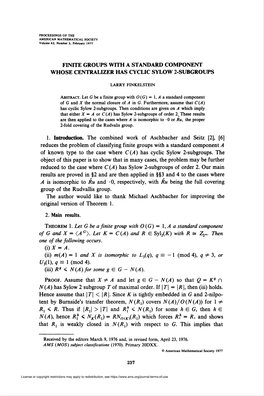 • Finite Groups with a Standard Component Whose Centralizerhas Cyclic Sylow 2-Subgroups