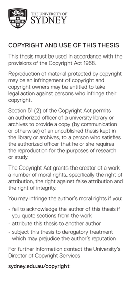 Copyright and Use of This Thesis This Thesis Must Be Used in Accordance with the Provisions of the Copyright Act 1968